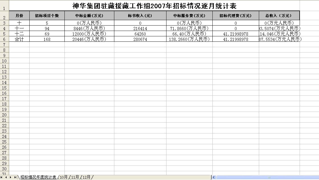 ws.Cells[1, 1] = year + "年" + bidName + GetMonth(Month) + "月份招標(biāo)項(xiàng)目情況一覽表";