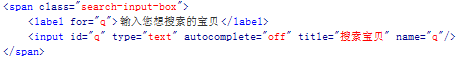 淘寶的輸入框則采取了另一種做法,它不把這段提示文字作為輸入框的value值,而是放在另一個標簽內(nèi),再用絕對定位把這段文字疊到輸入框上: