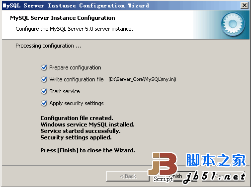待文件復(fù)制安裝完畢后,進(jìn)行MySQL設(shè)置界面,單擊Finish。