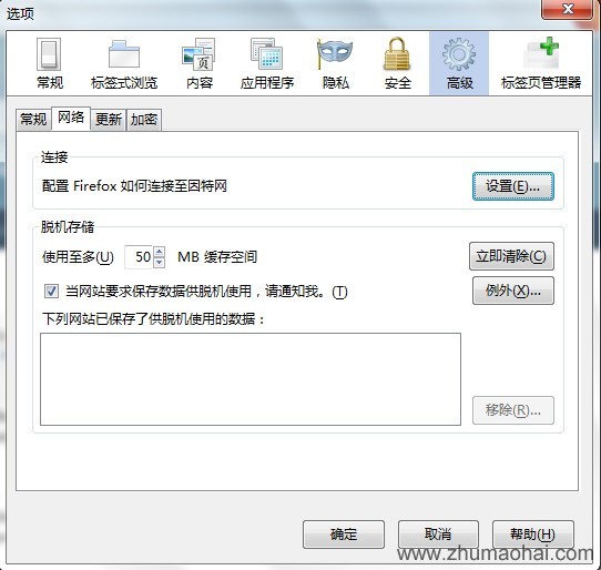 打開(kāi)火狐瀏覽器,到“工具->選項(xiàng)->高級(jí)->網(wǎng)絡(luò)“,點(diǎn)擊設(shè)置。