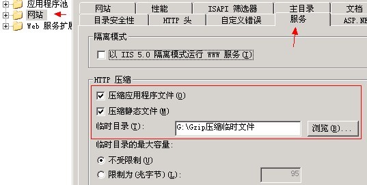 2、網(wǎng)站服務(wù)中開啟HTTP壓縮支持(如下圖)