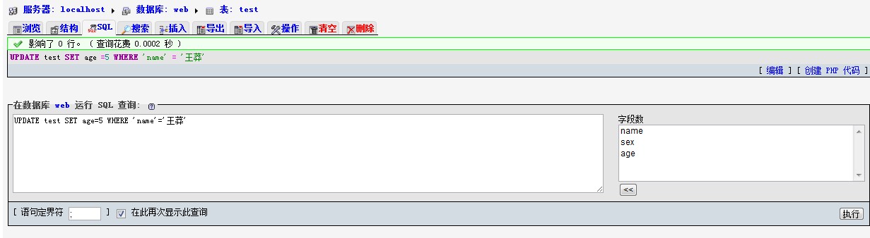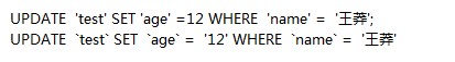 UPDATE test SET age=5 WHERE 'name‘='王莽'