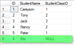 假設(shè)還是上面兩個表,學(xué)生和班級.我在學(xué)生中添加一個名為Eric的學(xué)生,但出于某種原因忘了填寫它的班級ID: