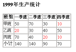 <!--此處測(cè)試產(chǎn)量,如小于等于20則添加一STYLE屬性color,其值為red(紅色)-->