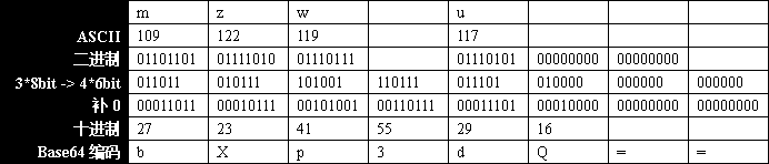 示例二:mzwu對(duì)應(yīng)Base64編碼為bXp3dQ==