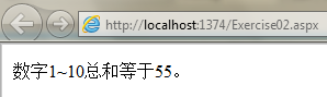 Response.Write(string.Format("數(shù)字1~10總和等于{0}。", Sum(1, 10).ToString()));