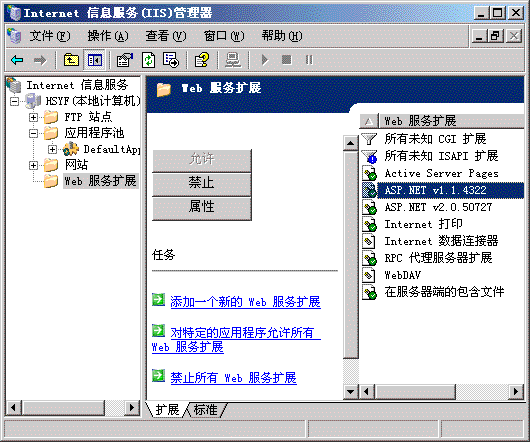 其實這是由于Windows 2003默認的安全性較高引起的,因為在默認狀態(tài)下Windows 2003服務器系統(tǒng)并沒有開啟ASPX頁面的訪問權(quán)限,這需要我們用手工方法才能開啟成功,下面就是具體的開啟步驟: