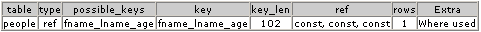 EXPLAIN SELECT peopleid FROM people WHERE firstname='Mike' AND lastname='Sullivan' AND age='17';