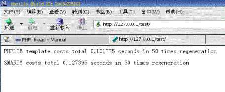果然,測試結(jié)果如下圖,PHPLIB template有25%的速度優(yōu)勢: