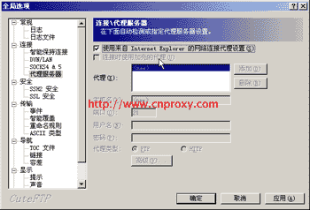 在左邊的設置快捷工具欄中選擇“連接”→“代理服務器”可以設置http代理。在這里你也可以選擇使用在瀏覽器中設置的代理,如圖所示。