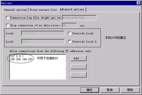 在列表框中選中一代理,在菜單中選取 Edit…,可對代理的IP地址及端口進(jìn)行修改。