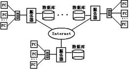 總部和各分店都配置了一臺(tái)具有固定IP的服務(wù)器,其它電腦通過集線器與服務(wù)器相連,總部和各分店的服務(wù)器通過通信網(wǎng)絡(luò)聯(lián)接起來。