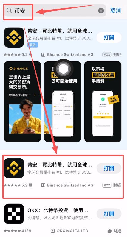 1. 在搜索框輸入“幣安”或“Binance”。