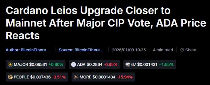 2026年推動Cardano價格上漲的關鍵催化劑:Leios、CME和USDCx