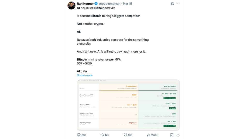 人工智能時代比特幣挖礦的未來引發(fā)的爭論日益激烈,這又給問題增添了一層復雜性。
