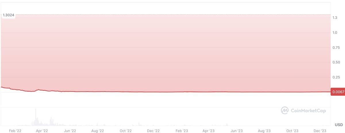 2022年初,Jasmi Coin的價(jià)格約為0.08美元,但到年底跌至0.003美元。