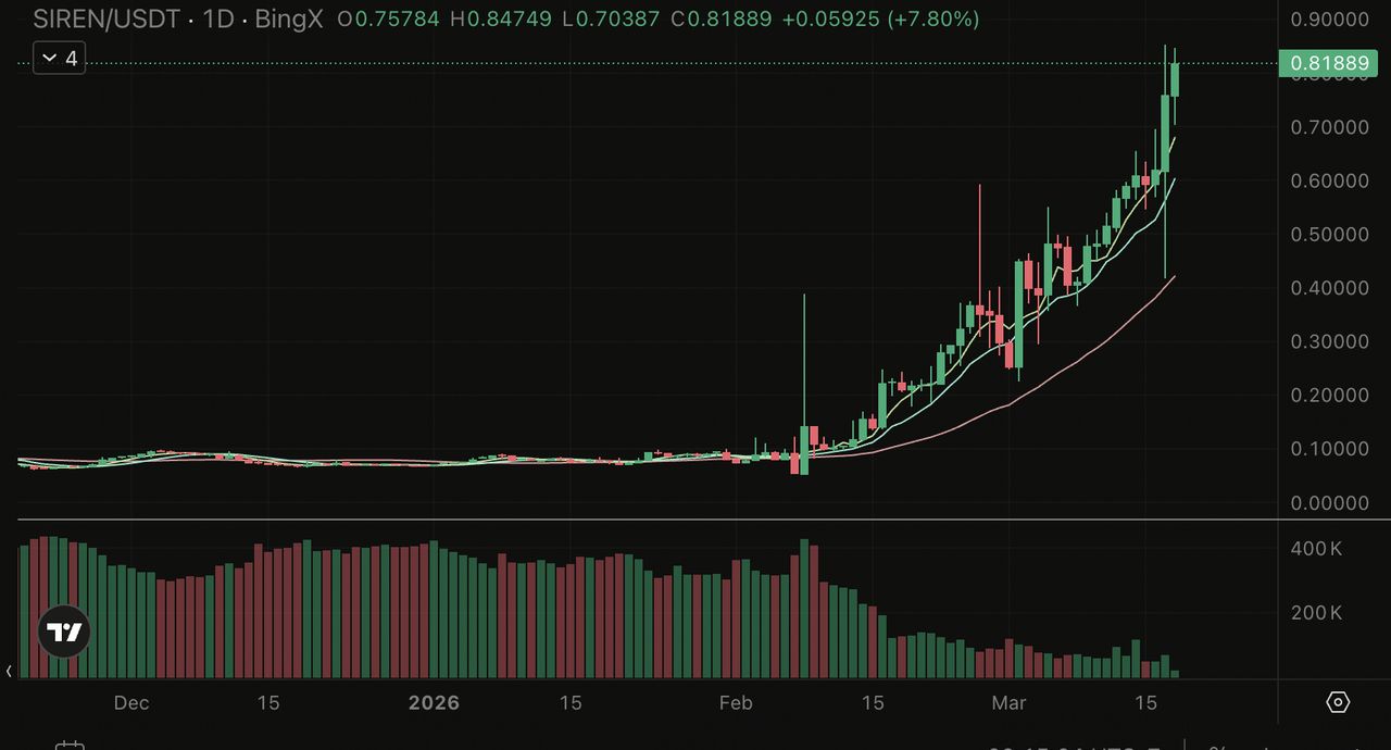 SIREN/USDT 價格圖表 - 來源:BingX