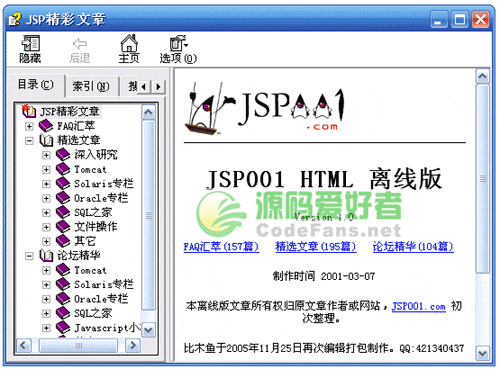 JSP技巧集包括一些Tomcat,oracle,mysql,Solaris,Javascript方面的精選技巧文章集以及專欄,都是一些很經典的文章。全書CHM格式,無需安裝閱讀軟件,非常方便。