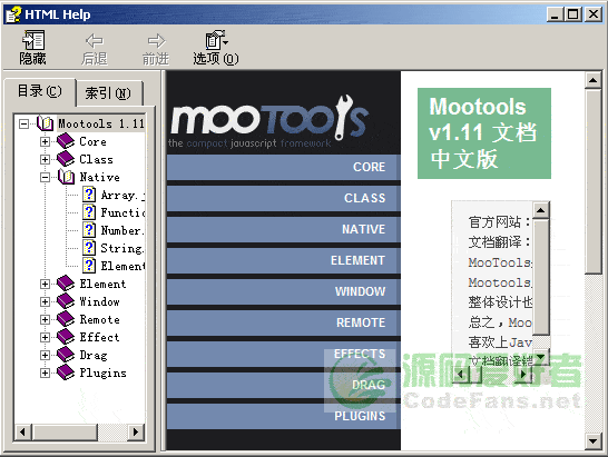 ☉ 本站提供的Mootools v1.1 中文文檔 chm資源來源互聯(lián)網(wǎng),版權(quán)歸該下載資源的合法擁有者所有。