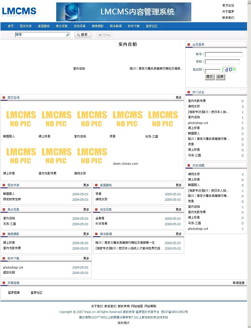 LMCMS 居于PHP5+MySQL5的技術開發(fā),支持Windows、Linux、Unix等多種服務器平臺,從2007年開始發(fā)布第一個版本開始,至今已發(fā)布了四個大版本。LMCMS以簡單、健壯、靈活幾大特點。