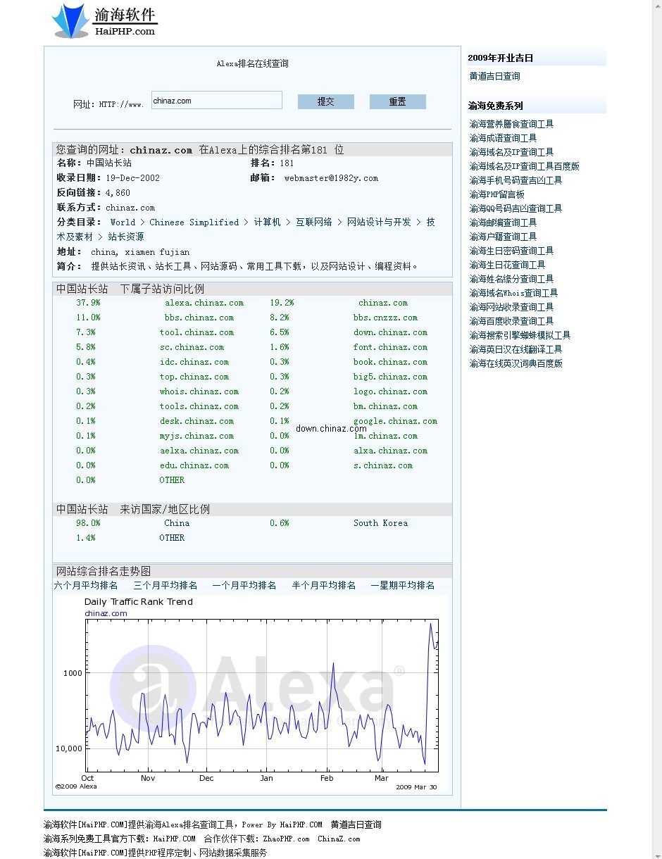 渝海Alexa PHP排名查詢工具 v1.2