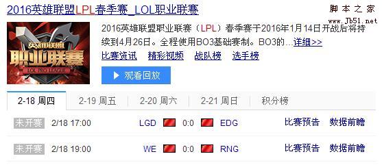 LPL1月18日賽程時(shí)間地址介紹 LGDEDGWE精彩紛呈,大家期待已久的LPLS6春季賽繼續(xù)開始啦。第一天肯定會很精彩??靵砜纯窗?!