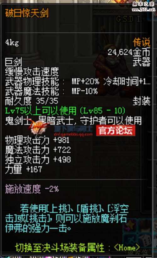 DNF破日驚天劍屬性: