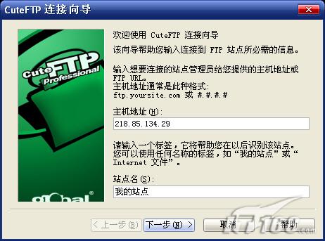 首次運(yùn)行CuteFTP時(shí),軟件會(huì)自動(dòng)顯示“CuteFTP連接向?qū)А?,通過(guò)它我們就能直觀的添加新站點(diǎn)資料。添加新站點(diǎn)的過(guò)程很簡(jiǎn)單,就算你是第一次接觸FTP參數(shù)設(shè)置也沒(méi)問(wèn)題,整個(gè)連接向?qū)潭加性敿?xì)提示,大家按照提示一步一步完成即可,如圖1。