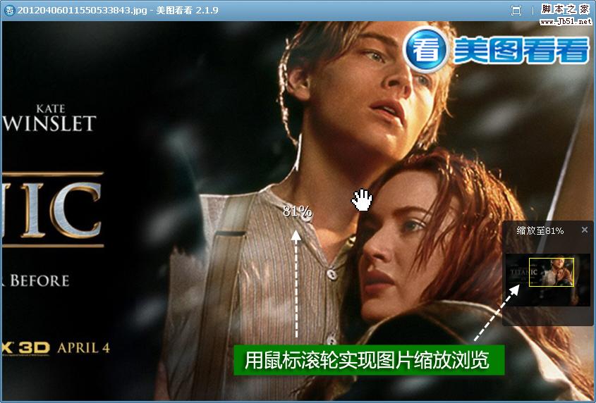 在美圖看看大圖瀏覽窗口下,默認(rèn)情況下當(dāng)我們撥動鼠標(biāo)滾輪時可以放大縮小圖片,實現(xiàn)非常方便的圖片縮放瀏覽操作,如圖01所示。同時,在瀏覽窗口中單擊鼠標(biāo)左鍵拖動,即可實現(xiàn)圖片位置的隨意移動,這對于瀏覽超大尺寸的圖片或漫畫來說,會很有益處;因為這樣就可以拖動圖片把每一個細(xì)節(jié)都看清楚。