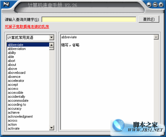 ☉ 本站提供的計(jì)算機(jī)英語(yǔ)速查手冊(cè)V2.26 綠色版資源來(lái)源互聯(lián)網(wǎng),版權(quán)歸該下載資源的合法擁有者所有。