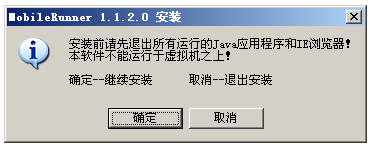 安裝前請先退出所有運行的Java應用程序和IE瀏覽器!本軟件不能運行在虛擬機之上!