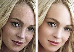 即使用PS軟件中的圖層、蒙版、通道、工具,濾鏡或其它軟件給圖片中的人物消除皮膚部分的斑點(diǎn)、瑕疵,雜色等。 讓皮膚看上去光滑、細(xì)膩,自然。