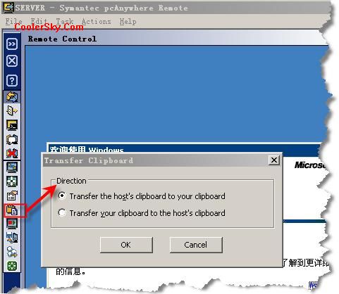 在遠(yuǎn)程控制過(guò)程中,我們經(jīng)常會(huì)使用到剪貼板功能,將主控端的剪貼板內(nèi)容復(fù) 制到被控端。Windows遠(yuǎn)程桌面可以簡(jiǎn)單的使用Ctrl+C和Ctrl+V完成,即做到了剪貼板共享。但是 PCAnywhere實(shí)現(xiàn)這一功能就顯得有些復(fù)雜了。