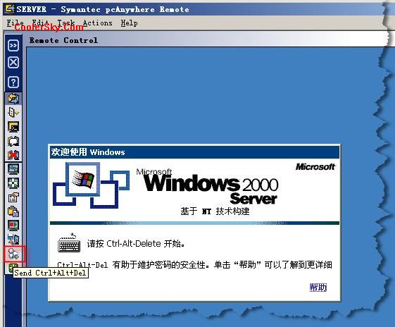 在 PCAnywhere中如果需要在被控計(jì)算機(jī)上按“Ctrl+Alt+Del”組合鍵,則不可以在主控計(jì)算機(jī)上直接操作, 而需要通過(guò)單擊遠(yuǎn)程操作界面上的“發(fā)送Ctrl+Alt+Del”按鈕來(lái)實(shí)現(xiàn)。