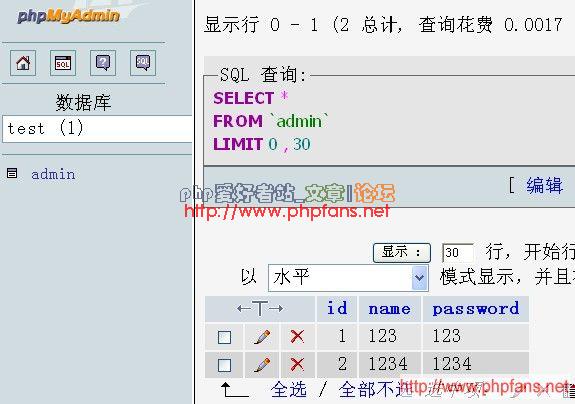 1。先用phpmyadmin建一個test的數(shù)據(jù)庫,目前沒用任何數(shù)據(jù)表在其中