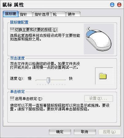 在某些特殊的應(yīng)用比如游戲里,如果你需要頻繁地用到右鍵,而通常食指又比中指靈活,可以在“切換主要和次要按鈕”旁邊的方框中打鉤,這樣右鍵和左鍵就互換過來了。如果要取消互換,將鉤去掉即可。