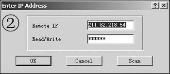 第2步 在“File”菜單中單擊“Open Remote Config”,顯示如圖2所示“Enter IP Address”對(duì)話框。