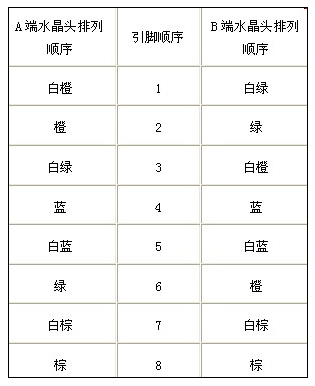 水晶頭一端遵循568A,而另一端遵循568B標(biāo)準(zhǔn)。即兩個(gè)水晶頭的連線交叉連接,A水晶頭的1、2對(duì)應(yīng)B水晶頭的3、6 而A水晶頭的3、6對(duì)應(yīng)B水晶頭的1、2。交叉線纜適用于: