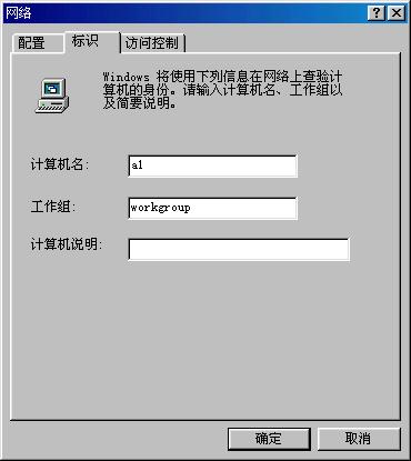 ●“計(jì)算機(jī)名”輸入框——“計(jì)算機(jī)名”輸入框用于輸入你給你的這臺(tái)電腦所取的名稱,用以區(qū)別和網(wǎng)絡(luò)上的其它計(jì)算機(jī)。需要說(shuō)明的是計(jì)算機(jī)名必須是唯一的,網(wǎng)絡(luò)中不能有同名計(jì)算機(jī)。所以我們建議你可將你的“計(jì)算機(jī)名”取為易記又不易重復(fù)的名字,如在此例中我們將這臺(tái)電腦命名為“A1”。