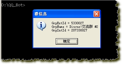 把這個提示框中的GrpIntId 值寫到配置文件QQ.ini中的第二個群([Group 2])中的GrpIntId后面(替換這個GrpIntId當前值)