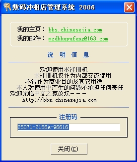 數(shù)碼沖相店管理系統(tǒng) 2006 build 2006.5 注冊破解版 下載