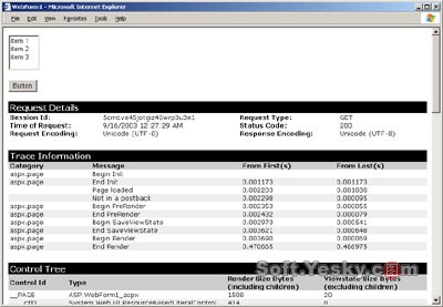隨著.NET框架組件的出現(xiàn)這種情況發(fā)生了徹底的改變。在.NET中,你可以使用Visual Studio .NET中的調(diào)試程序跟蹤整個(gè)Web應(yīng)用程序的執(zhí)行,或者使用System.Web.TraceContext名字空間中的Trace類。本文演示如何使用Trace類輔助你的調(diào)試工作。 使用Trace類 ASP.NET中包含了一個(gè)幫助跟蹤應(yīng)用程序信息流的Trace類。作為使用Response對(duì)象進(jìn)行調(diào)試的代替,你現(xiàn)在可以使用Trace類打印出調(diào)試信息了。 為了演示它的使用,我們首先建立一個(gè)ASP.NET Web應(yīng)用程序,并在默認(rèn)的WebForm1上放置一個(gè)Button和一個(gè)ListBox控件(如圖1所示)。用三個(gè)項(xiàng)填充ListBox控件并把它的AutoPostBack屬性設(shè)置為True。