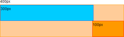 一個(gè)寬400px的黃盒子,左邊放一個(gè)300px的小藍(lán)盒子,右邊放一個(gè)寬100px的紅盒子.這樣應(yīng)該正好放下對(duì)吧? 因?yàn)?00+100正好是400呀! 好了,先試一試!