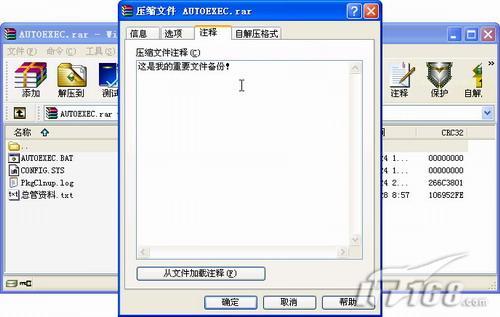 使用的壓縮文件多了,時間一長就會不知道有哪些文件,更不要說文件里有哪些內(nèi)容了,如果給自己的壓縮文件寫幾句注釋的話,以后打開來一看就知道它是何許作用了,在WinRAR中提供了這樣功能。具體的方法是:先用WinRAR打開相應(yīng)的RAR文件,然后點擊工具欄上的“注釋”鈕,在注釋窗口中輸入自己的注釋內(nèi)容即可(如圖11,支持中文輸入)。
