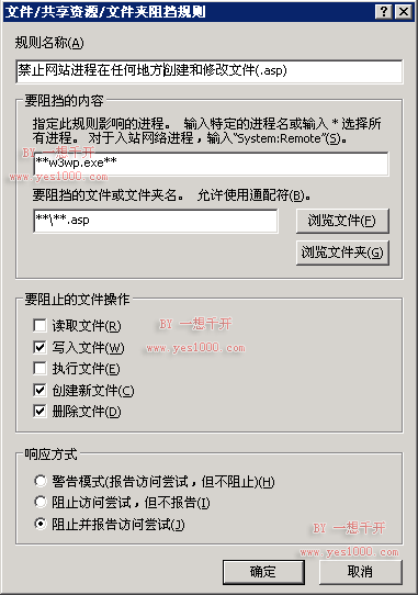 需要注意的一點(diǎn):因本規(guī)則將阻止IIS進(jìn)程對(duì)任何.asp文件的修改,因此如果你的網(wǎng)站使用的是ACCESS數(shù)據(jù)庫(kù),請(qǐng)使用本規(guī)則后將數(shù)據(jù)庫(kù)修改為其他后綴名。