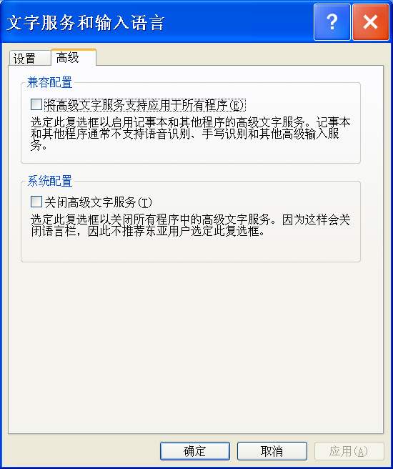 2.進(jìn)入“高級”標(biāo)簽,取消對“關(guān)閉高級文字服務(wù)”項(xiàng)的選擇即可(圖2)。如果要加快系統(tǒng)啟動速度或減少系統(tǒng)資源占用(高級文字服務(wù)中的手寫識別、語音識別和某些附加功能會影響計算機(jī)性能),可直接在任務(wù)欄的語言欄上的“鍵盤”狀圖標(biāo)上右鍵單擊,選擇“設(shè)置”命令,再勾選上述選項(xiàng)即可。
