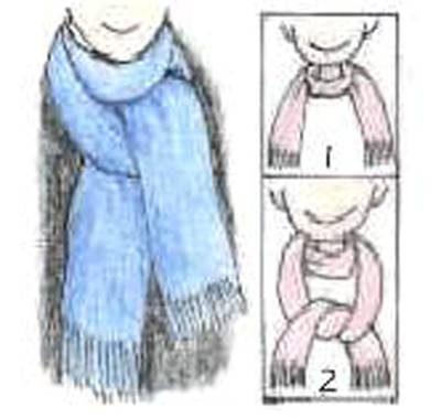 把圍巾繞在脖子上打一個結(jié),打結(jié)處要留一點空隙