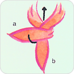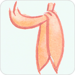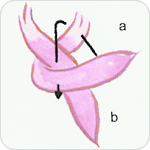 *較長(zhǎng)的 a 端繞過較短的 b 端,穿過領(lǐng)巾內(nèi)側(cè)向上拉出.