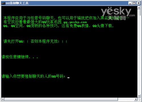 Set /p num=請輸入你想要強(qiáng)制聊天的人的QQ號碼: