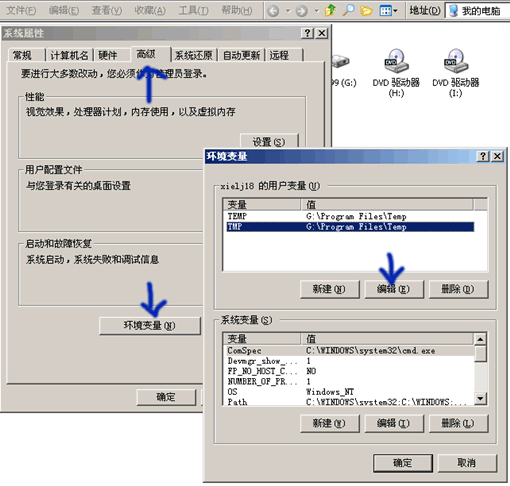 右鍵“我的電腦”選擇屬性-高級-環(huán)境變量,把用戶變量轉(zhuǎn)移到其它分區(qū)。例:選擇TEMP,雙擊,輸入新的路徑。